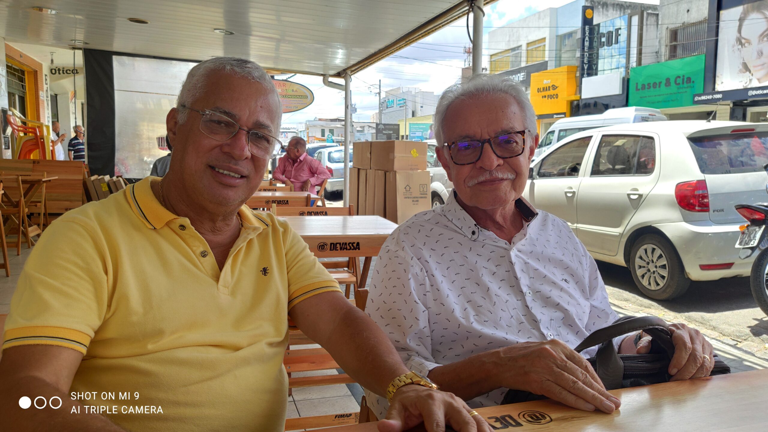 Jornalista Jair Onofre em um momento de descontração e papo de amigo com o ex-vice-prefeito de Feira de Santana, professor Luciano Ribeiro.